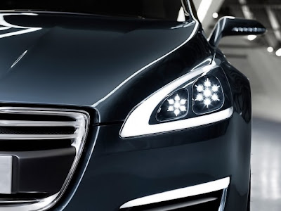 5 by Peugeot design look elegance which the contours of its three-box body flow smoothly, unruffled and without interruption or embellishment from the end of the hood to the top of the boot: all surfaces are flush-fitting, with clearances between each element precisely determined to obtain an assembly quality rivalling that of a goldsmith. The overall effect is that of a vehicle “hewn from a solid block of material”.